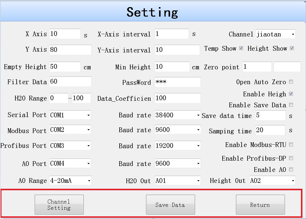 H20 Range:水分值有效區(qū)間,當(dāng)超出此區(qū)間時(shí),只顯示此區(qū)域的最大值或最小值。