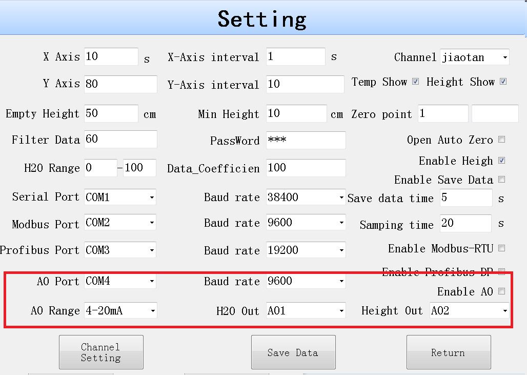 AO Port:與模擬量模塊通訊串口號(hào),默認(rèn)COM4.